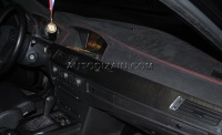 Легендарная и динамичная, серийно выпускаемая в Штутгарте, спортивная версия BMW M-5. Данный автомобиль приехал к нам в отличном состоянии и богатой комплектации. Поэтому на первый взгляд было непросто найти ту изюминку, которая добавила бы стиль в спортивную агрессию данной модели. Было решено в два этапа времени перетянуть торпеду в чёрную оригинальную алькантару производства Италии, и сделать выделяемую двойную отстрочку - красной ниткой. После этого спустя несколько дней, автовладелец пожелал перетянуть руль комбинацией: натуральная кожа и алькантара, с применением 3-х основных цветов нитей присущих стилю "М". А так же, рычага АКПП, площадки рычага, вышивкой логотипов на руле, и площадке рычага АКПП. Параллельно с этим, было решено дополнить оклейку аэрбега руля алькантарой с отстрочкой красной нитью, что придало особый спортивный шарм всей работе. В общую массу фотографий мы втавили несколько фотографий до момента начала тюнинга, для сравнения произошедших изменений. Работы производились лучшими специалистами автоателье "Автодизайн" и заняли в общей сложности 3,5 дня.