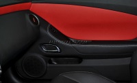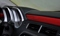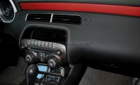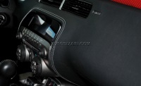 Перетяжка салона и тюнинг торпеды Chevrolet Camaro. Перетяжка потолка и стоек алькантарой двух цветов. Создание спортивного имиджа салона. Для тюнинга торпеды, на Шевроле Камаро использовали индивидуальные лекала, которые позволили идеально ровно подогнать декоративную строчку.